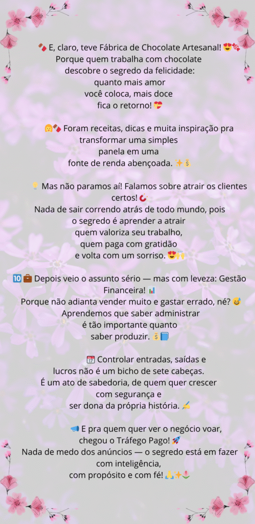 Se tem uma coisa maravilhosa no crochê é que ele não exige pressa… mas exige vontade! 🧶💛 Você começa com uma linha tímida, uma agulha meio desajeitada, e quando vê… está criando peças que o povo paga sem piscar! 😂✨ O hobby que antes ocupava só o sofá agora pode ocupar sua carteira inteira —…