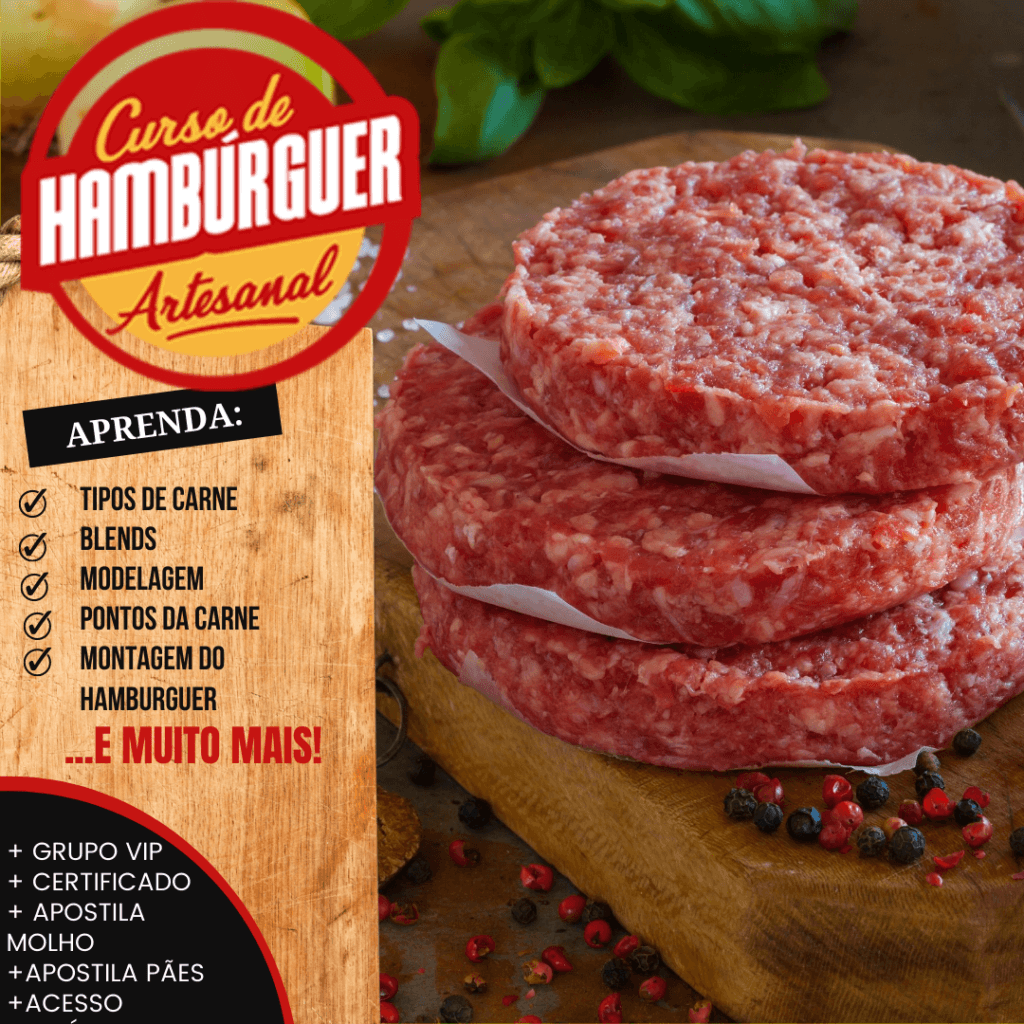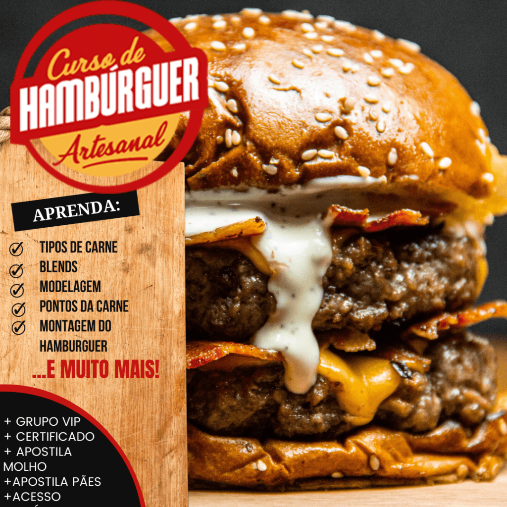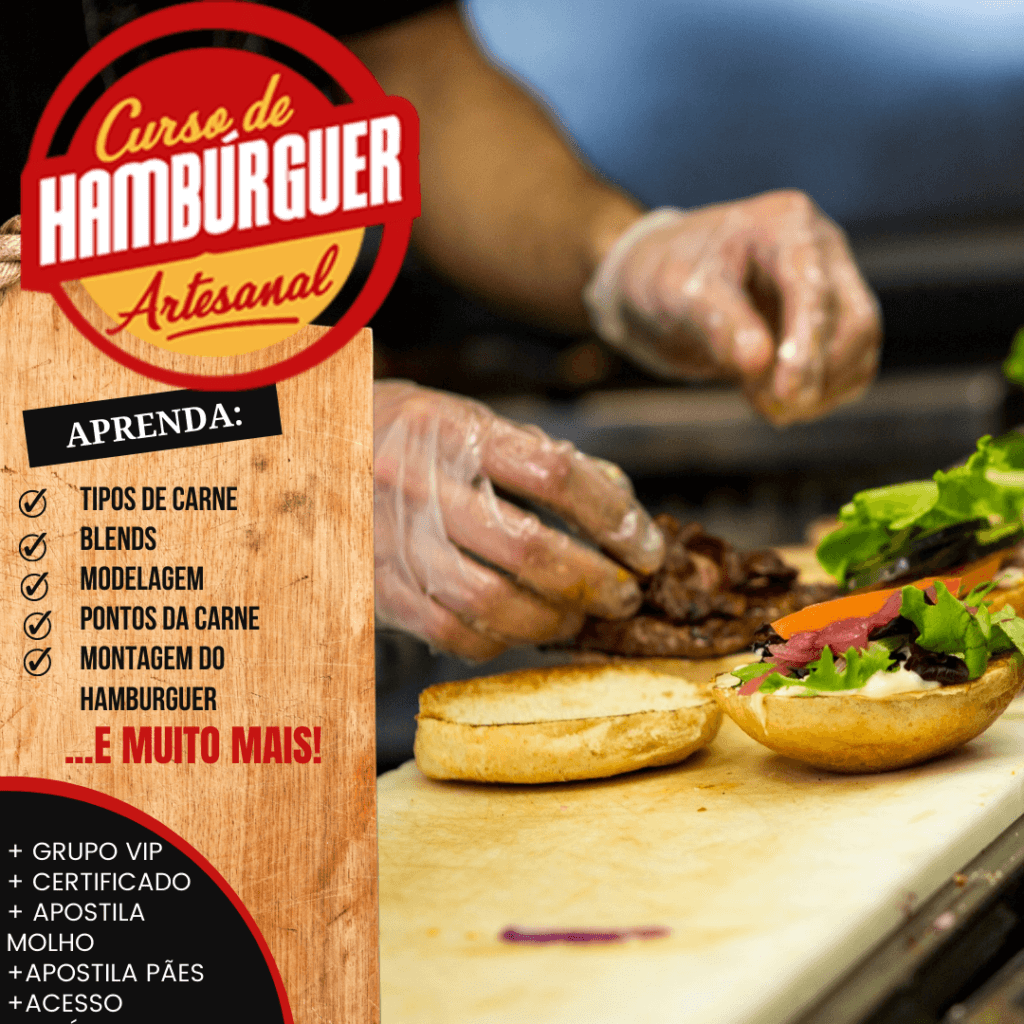 Aqui você aprende desde o ponto perfeito da carne até aquela montagem que faz o cliente suspirar antes da primeira mordida. É o tipo de conhecimento que transforma ingredientes simples em produto premium — e cliente comum em cliente fiel. 🤤🔥