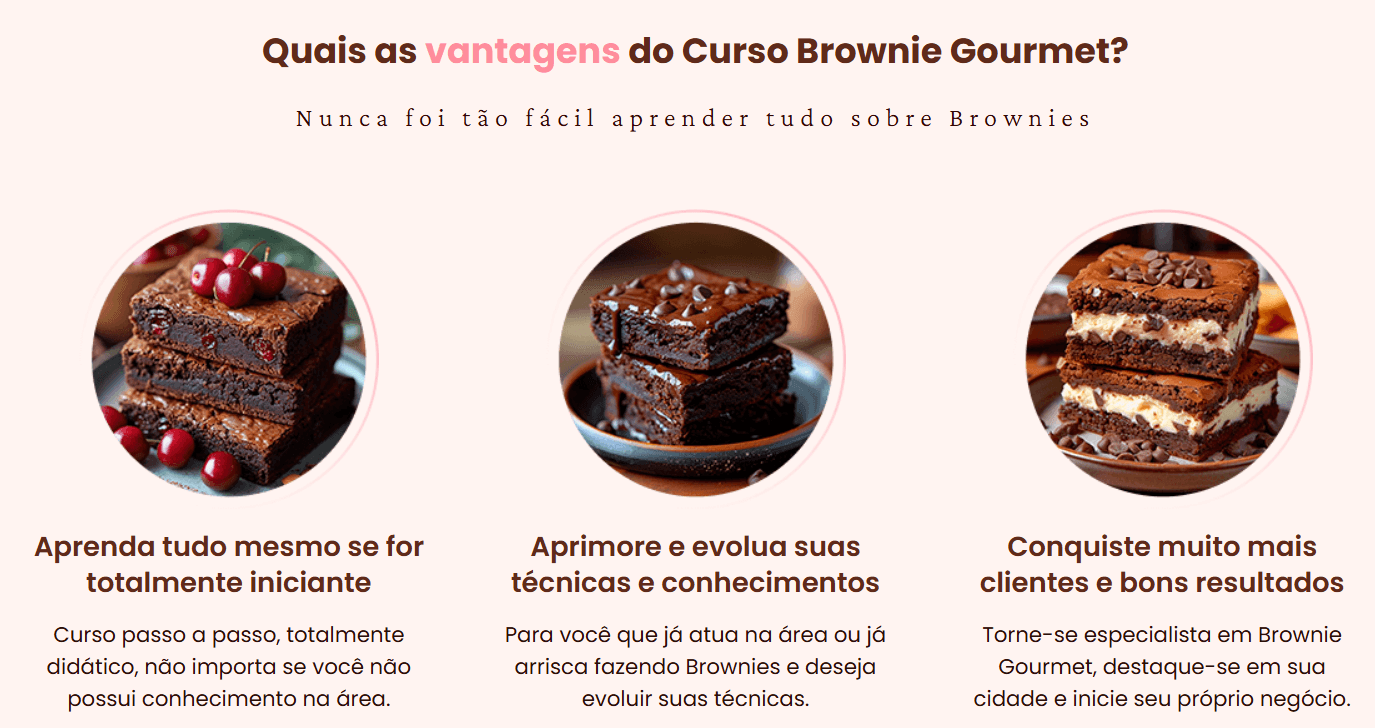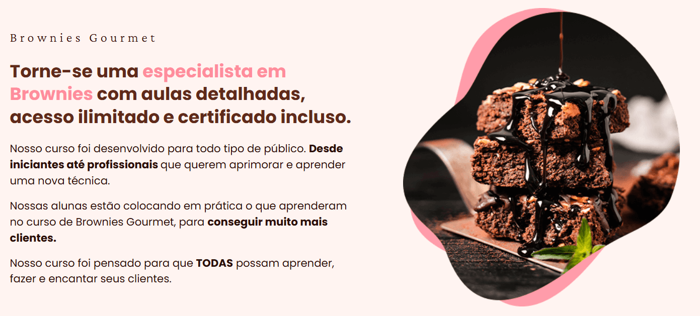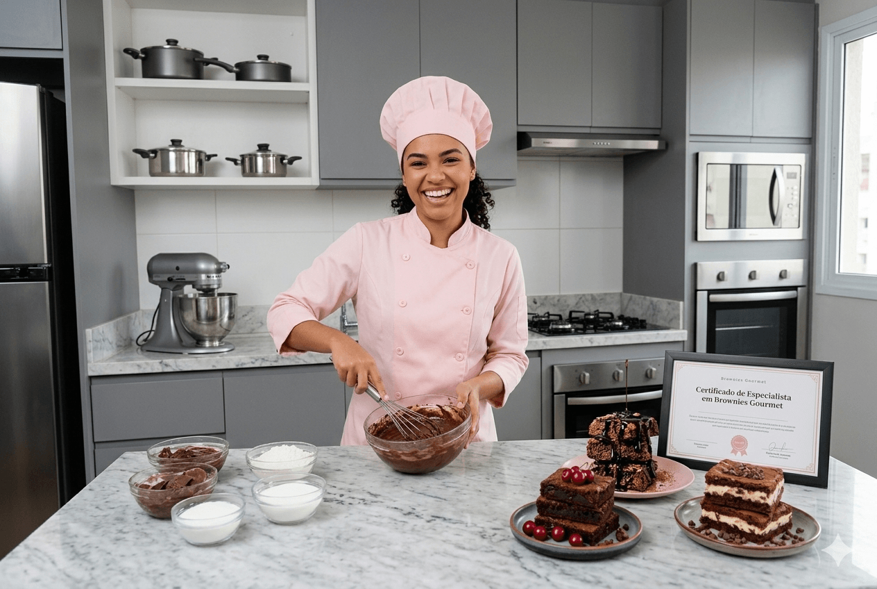Torne-se uma especialista em brownie gourmet, destacando-se na cidade e iniciando seu próprio negócio com a confiança de quem sabe o que está fazendo. O convite está feito para que a transformação comece agora, com toda a segurança e entusiasmo necessários. 🌈💃