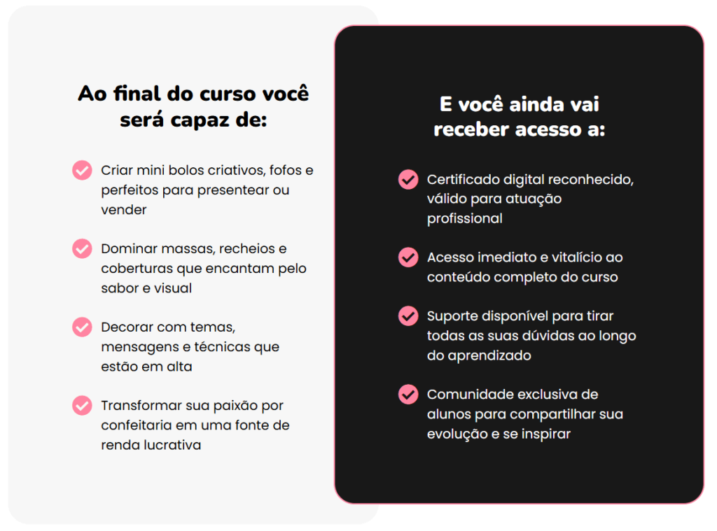 O curso é 100% pensado para iniciantes e para quem já trabalha com confeitaria, mas quer subir de nível. As técnicas são fáceis, explicadinhas, e cada módulo dá aquele estalo de “MEU DEUS, EU CONSIGO!” 🤯🙌