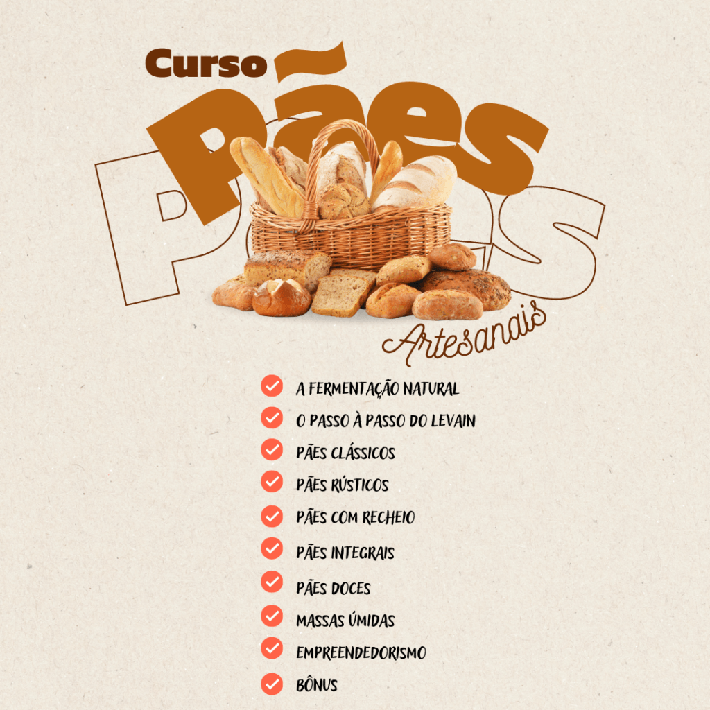 đšâđł Neste curso completo, vocĂȘ aprende panificação artesanal com fermentação natural, dominando desde as tĂ©cnicas tradicionais atĂ© receitas modernas que encantam qualquer paladar đâš Nada de pĂŁo sem graça: aqui o foco Ă© sabor, textura perfeita e aquele âuauâ na primeira mordida!