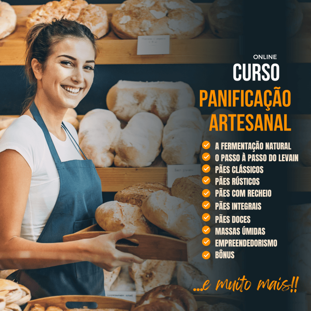 đ„° JĂĄ imaginou o cheiro de pĂŁo artesanal quentinho tomando conta da casa e ainda rendendo elogios, clientes e dinheiro no bolso? EntĂŁo prepare o avental, porque o Curso de Panificação Artesanal Ă© exatamente o que vocĂȘ precisa pra transformar farinha, ĂĄgua e fermento em pĂŁes incrĂveis e renda real đđž