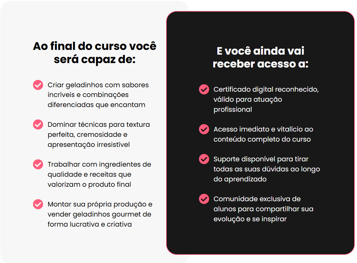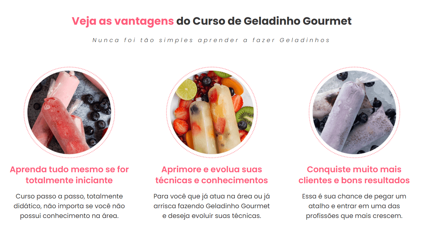 Esse curso foi criado pra te ensinar tudo, do básico ao avançado, mesmo que você nunca tenha feito um geladinho na vida. 😄🍧 Aqui você aprende sabores irresistíveis, combinações diferenciadas, textura perfeita e aquela apresentação que faz o cliente olhar e dizer: “me dá dois!” 😋🔥